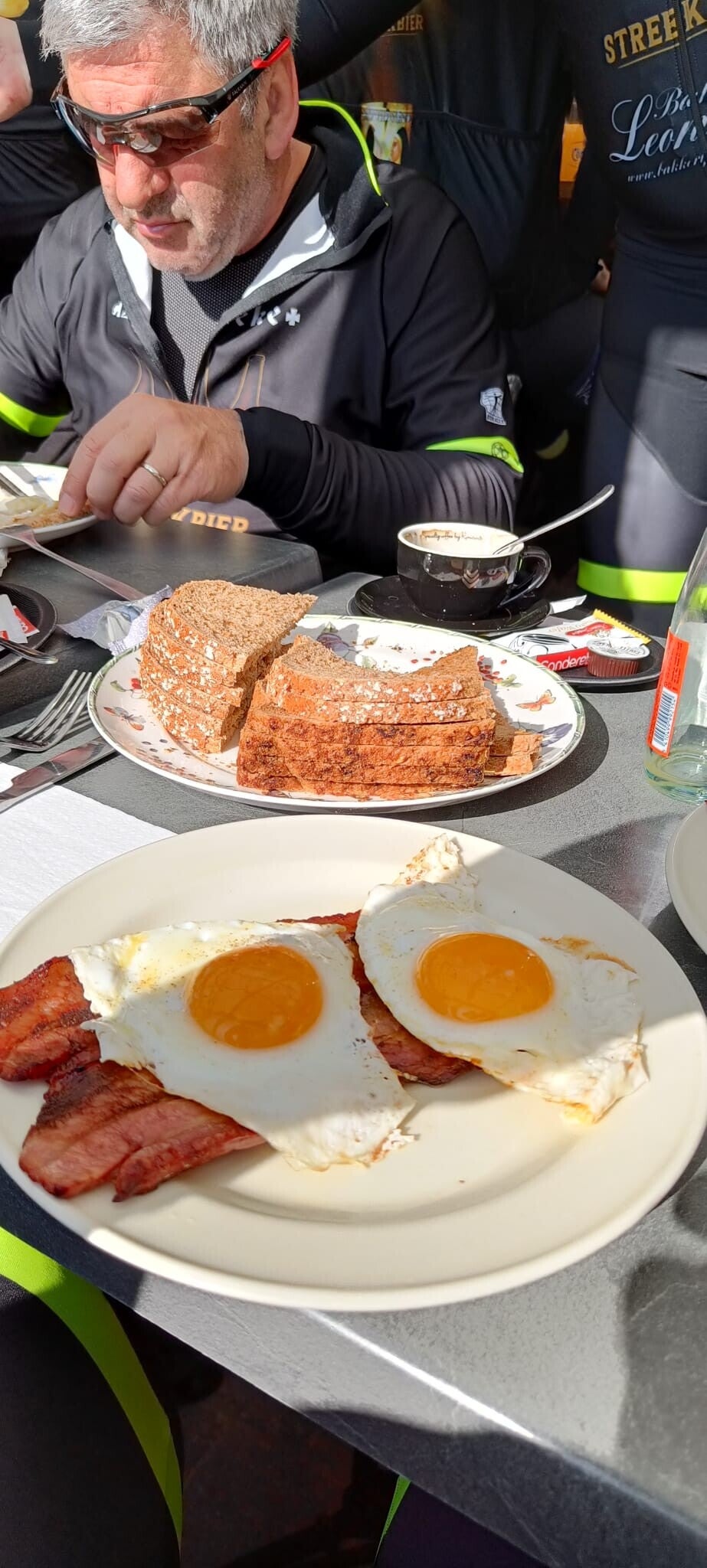 En zoals traditie is de eerste rit een traktatie rit met spek en ei om de jarigen te vieren van de afgelopen tijd.
