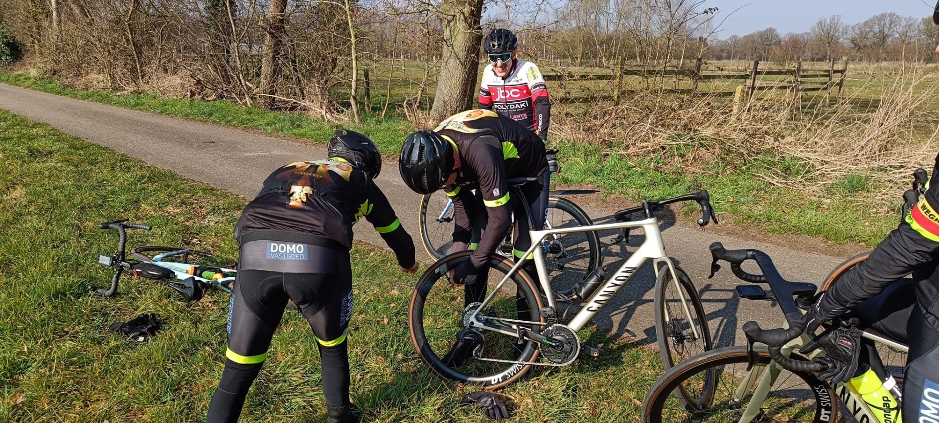 Helaas moesten we twee mannen onderweg missen. Kris voelde zich niet optimaal en besloot de rit op eigen tempo solo voort te zetten.