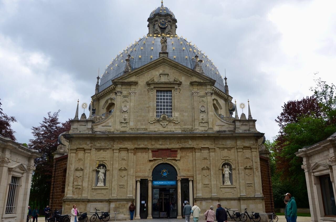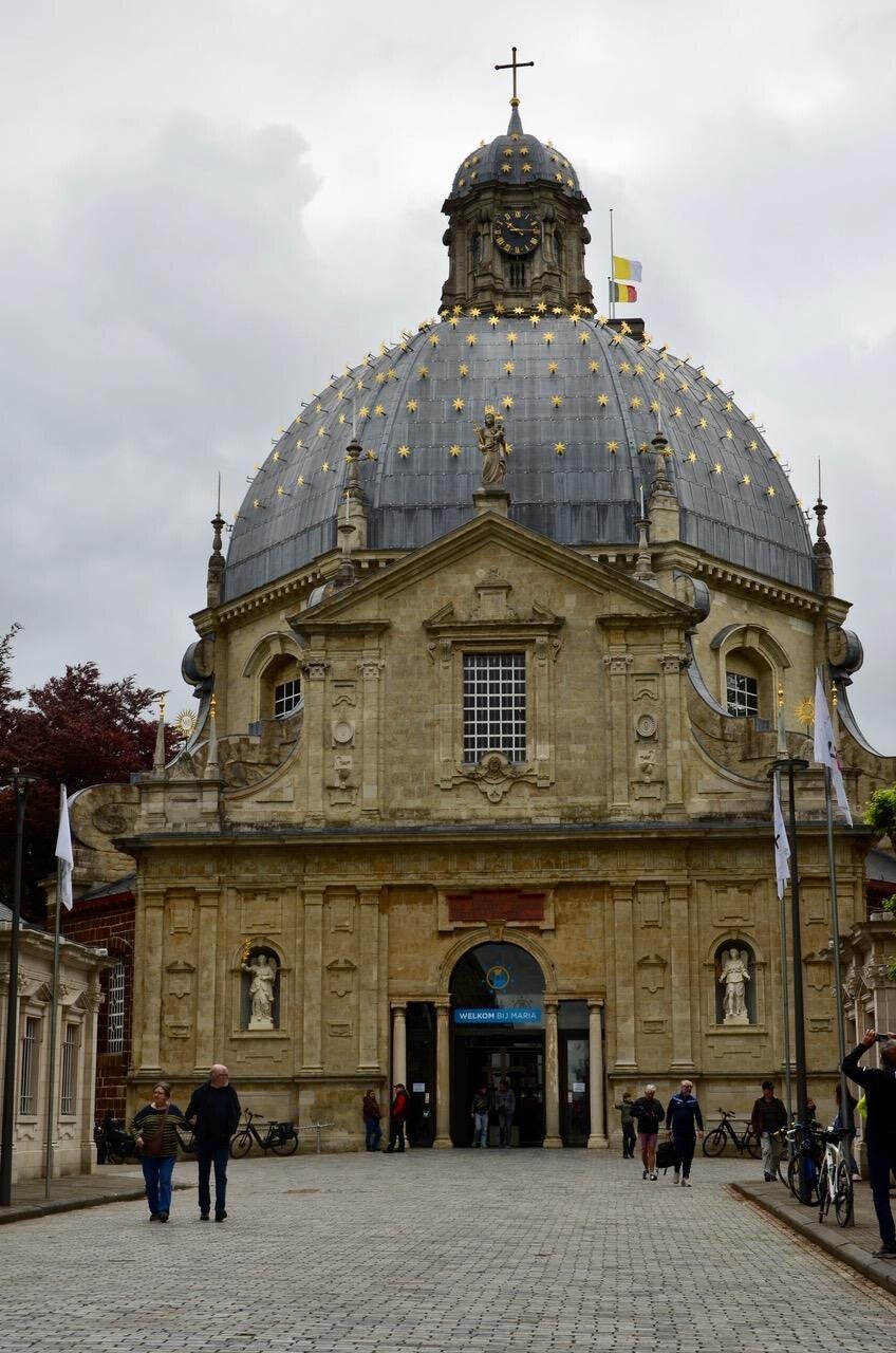 Daar werden we opgewacht door Ann, Lorelei en Brent. Zij zorgden ervoor dat ons vermoeide maar vrolijke gezelschap voor de imposante Basiliek van Onze-Lieve-Vrouw van Scherpenheuvel werd vastgelegd voor het nageslacht (of toch op z'n minst voor de Whatsapp groep/website).