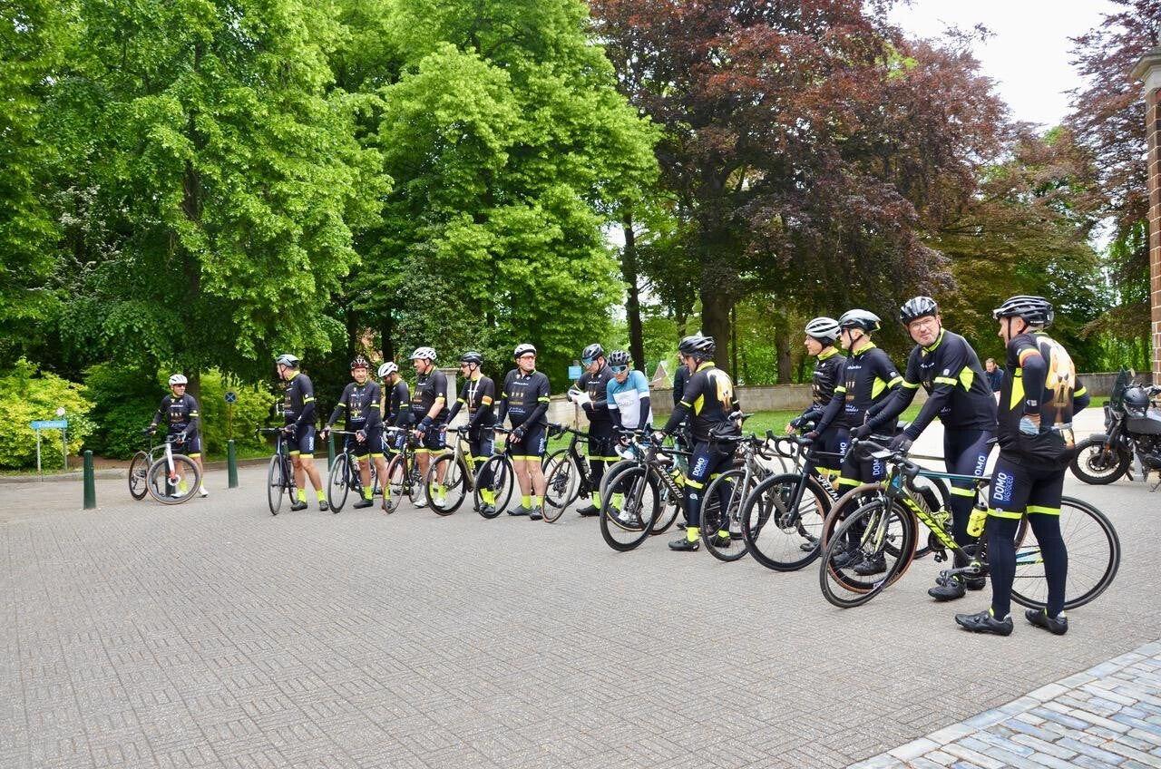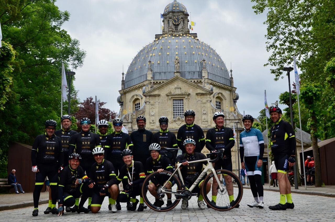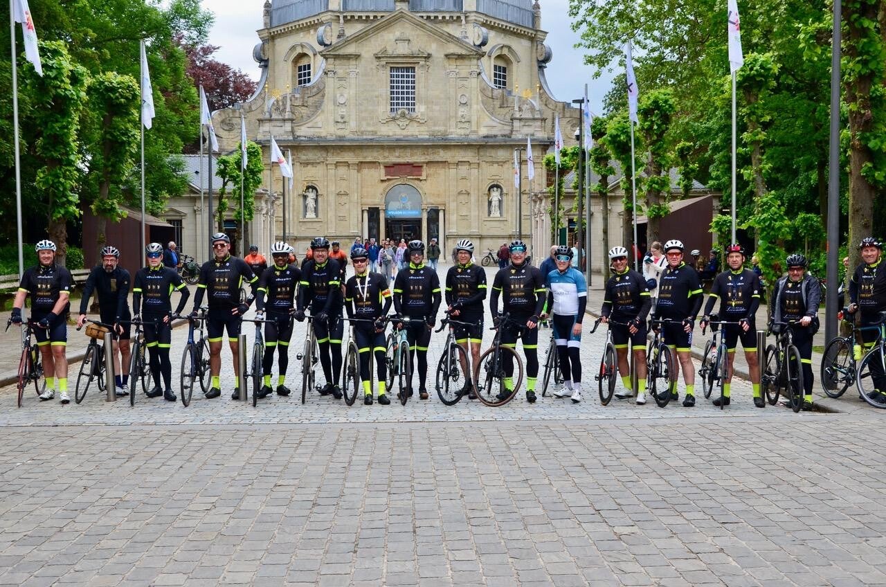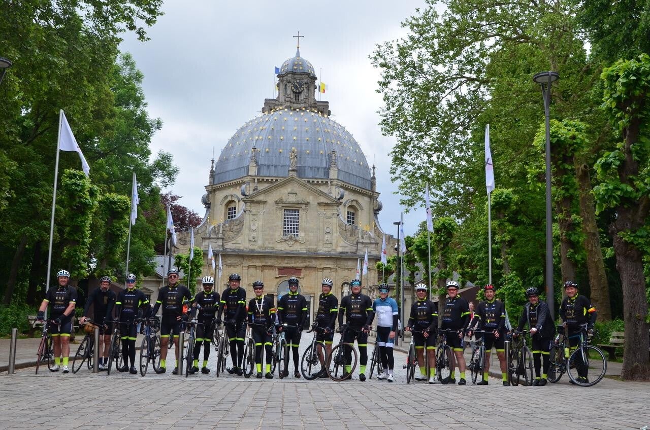 Hoewel de zon zich vandaag verlegen achter een dikke deken van wolken verschool, weerhield dat een bende van 16 wielerfanaten er niet van om om stipt 8 uur 's ochtends de 82 kilometer lange tocht naar Scherpenheuvel aan te vatten. Het jaarlijkse ritueel van de fietsenzegening stond weer op het programma, want je weet maar nooit wanneer een engelbewaarder op twee wielen van pas komt.