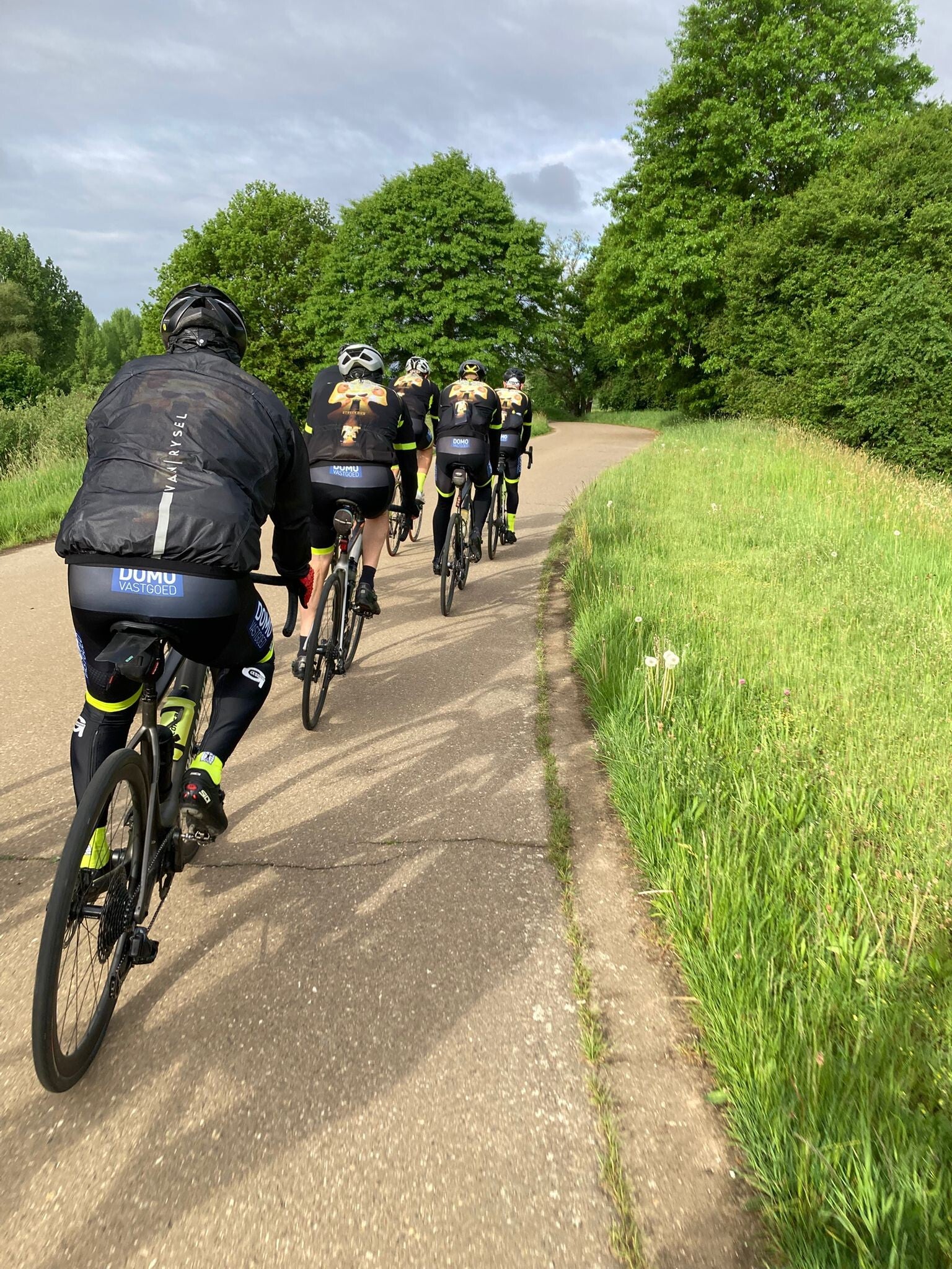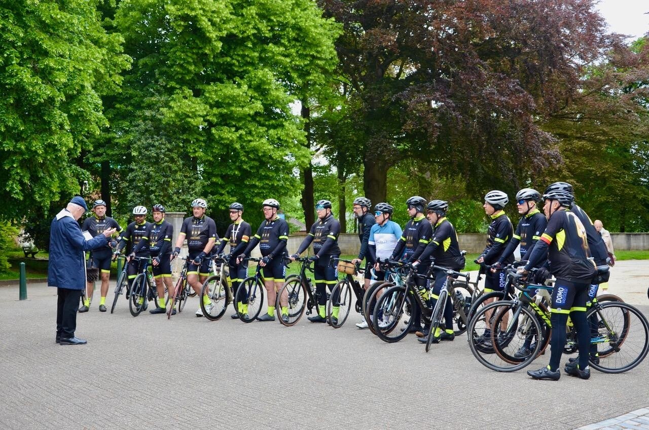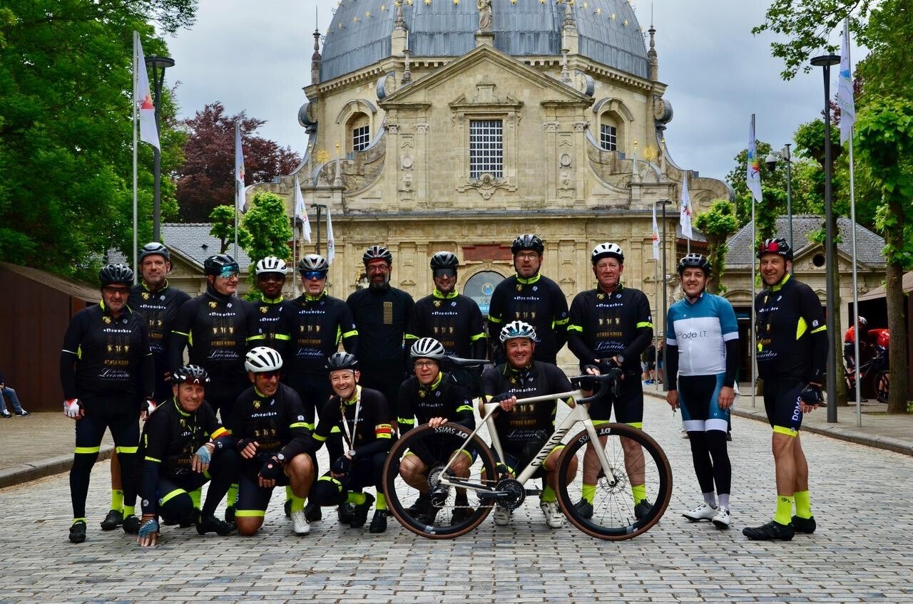 Hoewel de zon zich vandaag verlegen achter een dikke deken van wolken verschool, weerhield dat een bende van 16 wielerfanaten er niet van om om stipt 8 uur 's ochtends de 82 kilometer lange tocht naar Scherpenheuvel aan te vatten. Het jaarlijkse ritueel van de fietsenzegening stond weer op het programma, want je weet maar nooit wanneer een engelbewaarder op twee wielen van pas komt.
