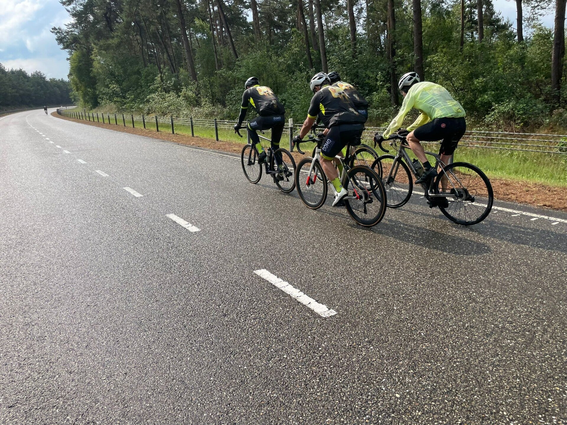 Met z’n achten keerden we huiswaarts richting Kuringen, rugwind mee langs het kanaal — en ja, de snelheidsmeters sloegen bijna tilt. Eenmaal aangekomen bij de Jail doken de meesten op de warme chocomelk, om weer wat gevoel in vingers en tenen te krijgen na een kletsnatte rit.