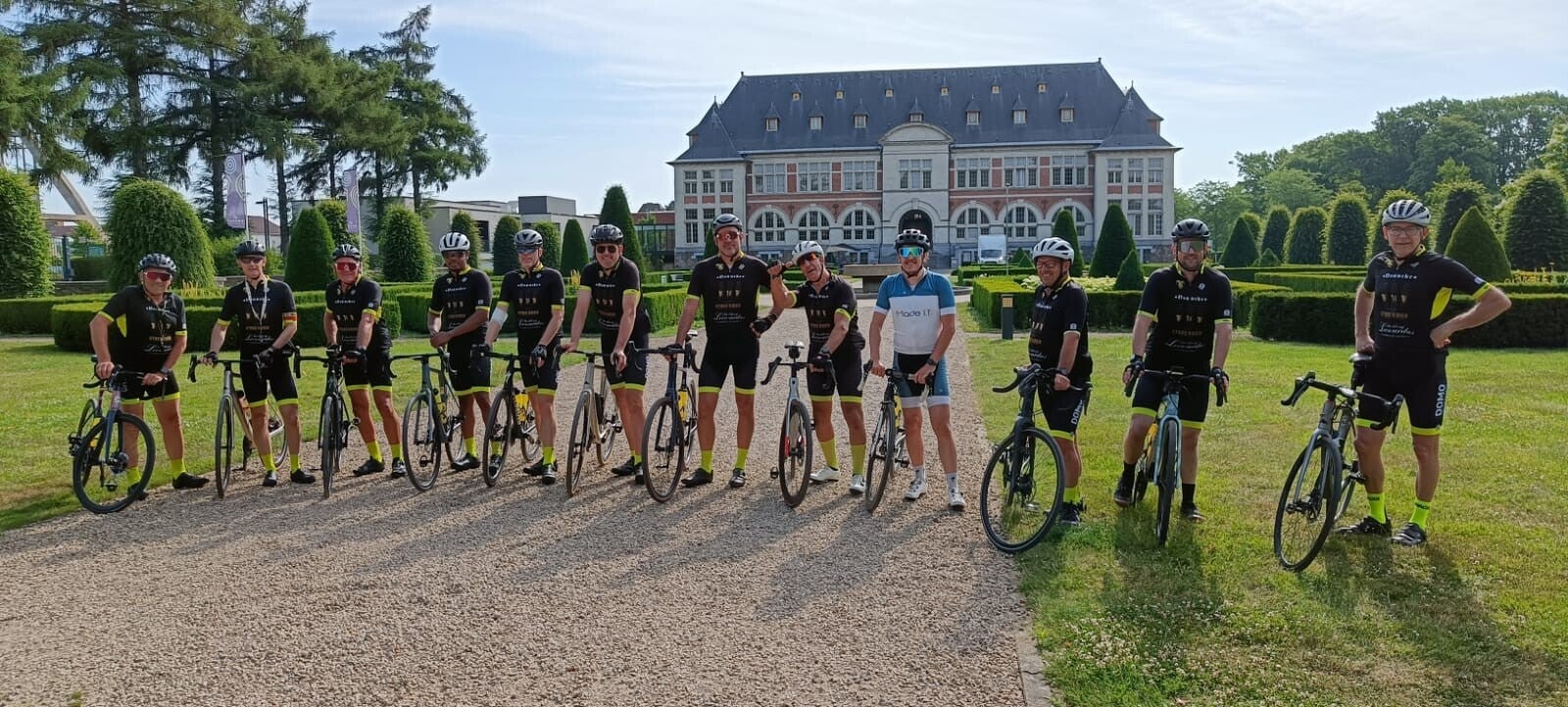 Tjebbe gaf het goeie voorbeeld. Na een avondje concert én slechts een kort powernapje stond hij om 8u alweer paraat voor een tochtje richting Terhils van zo’n 85 kilometer. Fris? Misschien niet helemaal. Aanwezig? Absoluut! Respect, kerel!