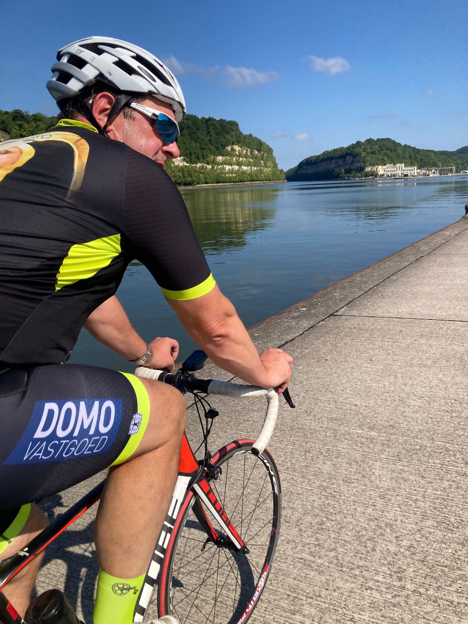 Vandaag stond er een mooi ritje van 102 kilometer richting Oupeye op het programma. Het zonnetje was van de partij, en de klimmetjes, al zaten er een paar pittige tussen bleven gelukkig goed te doen met dat warme weer. Gelukkig kregen we in ruil voor het zweet af en toe een prachtig uitzicht cadeau.