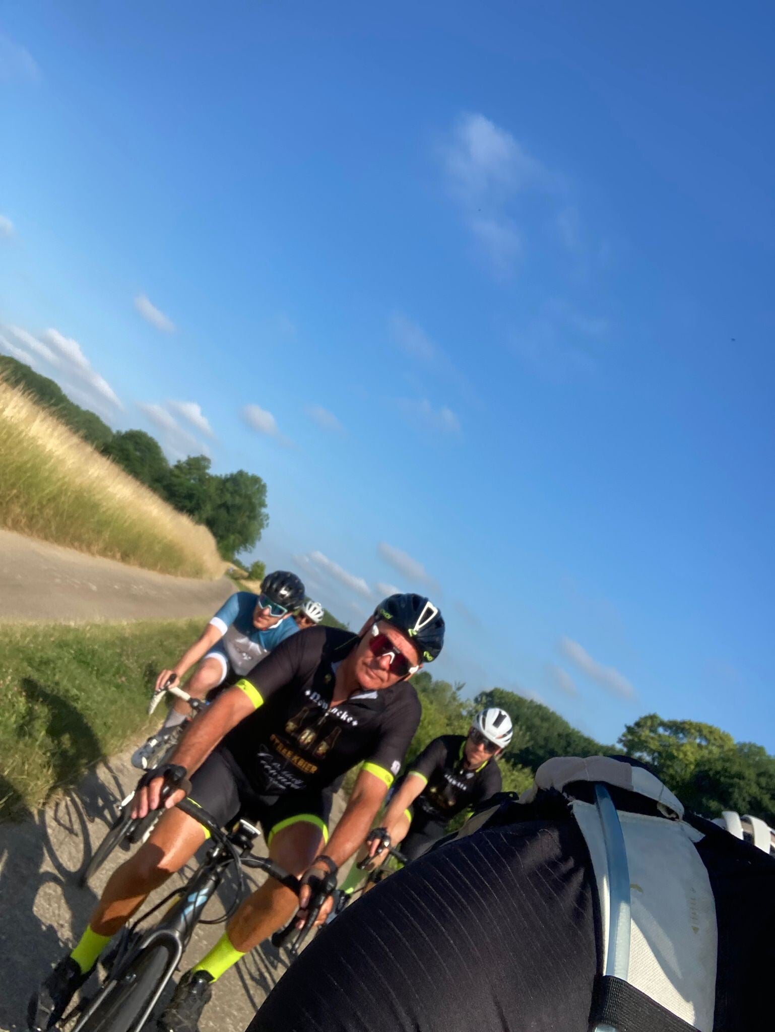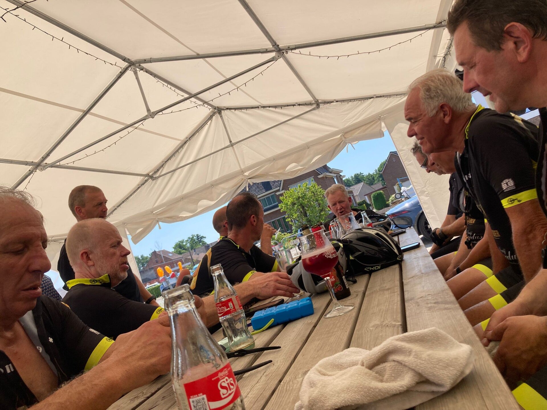 Onderweg was er wel even opschudding. Yves had een onverwachte date met een wesp, die zijn lip transformeerde tot iets wat verdacht veel leek op een mislukte botoxbehandeling. Gelukkig staken we net op tijd een engelbewaarder in verpleegsteruniform tegen het lijf, die hem de eerste zorgen toediende. Na een korte pitstop kon hij gewoon weer mee verder, zij het met een iets vollere lip.