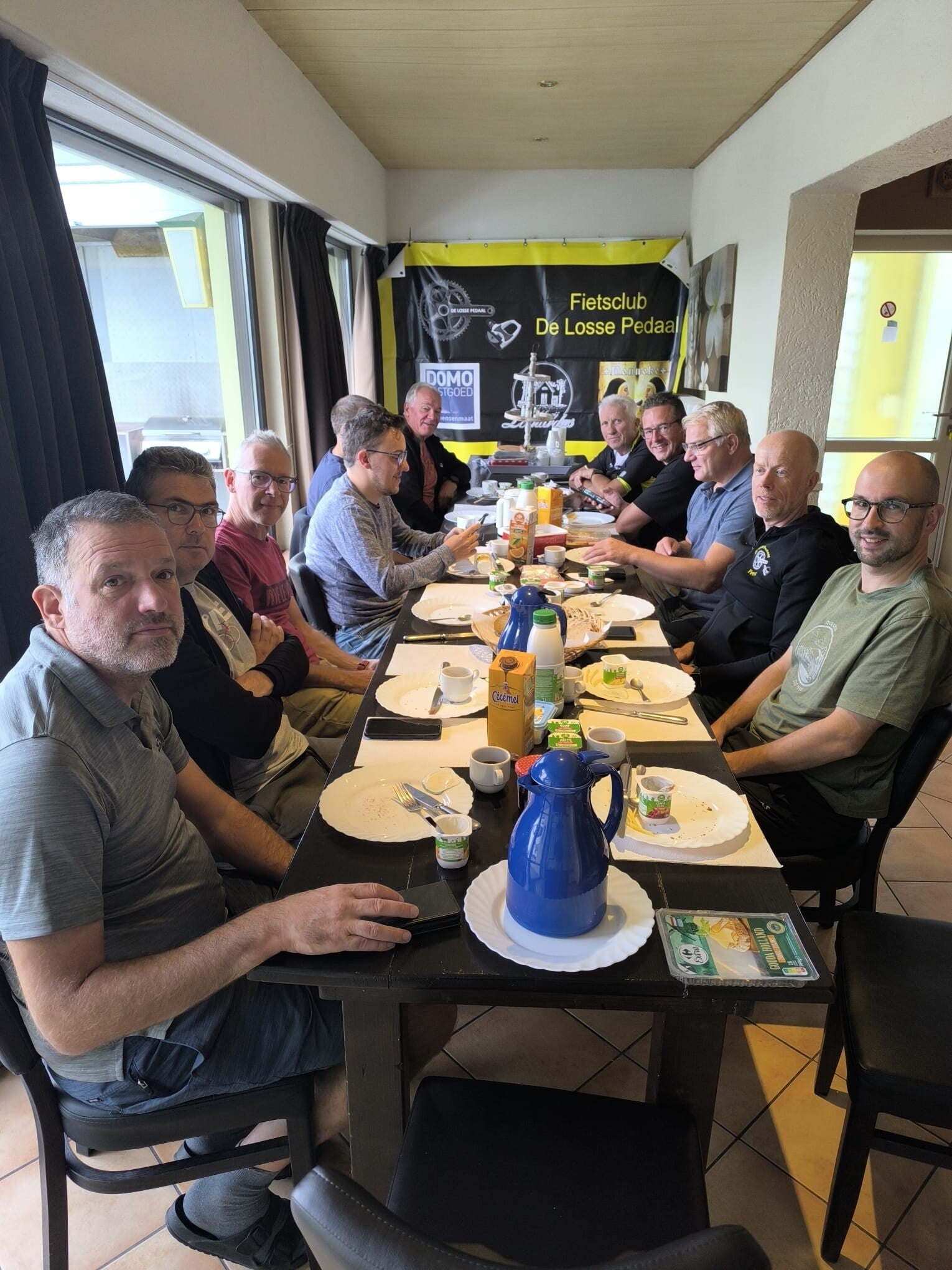 Zondag was het slotstuk. We startten met een stevig ontbijt: eitjes en spek. Yves C liet zich opnieuw niet kennen en pikte schaamteloos een stukje pannenkoek van Yves J mee. De toon was gezet.