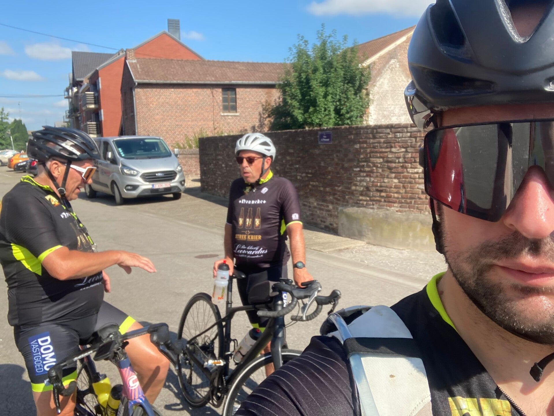 Onderweg was er wel even opschudding. Yves had een onverwachte date met een wesp, die zijn lip transformeerde tot iets wat verdacht veel leek op een mislukte botoxbehandeling. Gelukkig staken we net op tijd een engelbewaarder in verpleegsteruniform tegen het lijf, die hem de eerste zorgen toediende. Na een korte pitstop kon hij gewoon weer mee verder, zij het met een iets vollere lip.