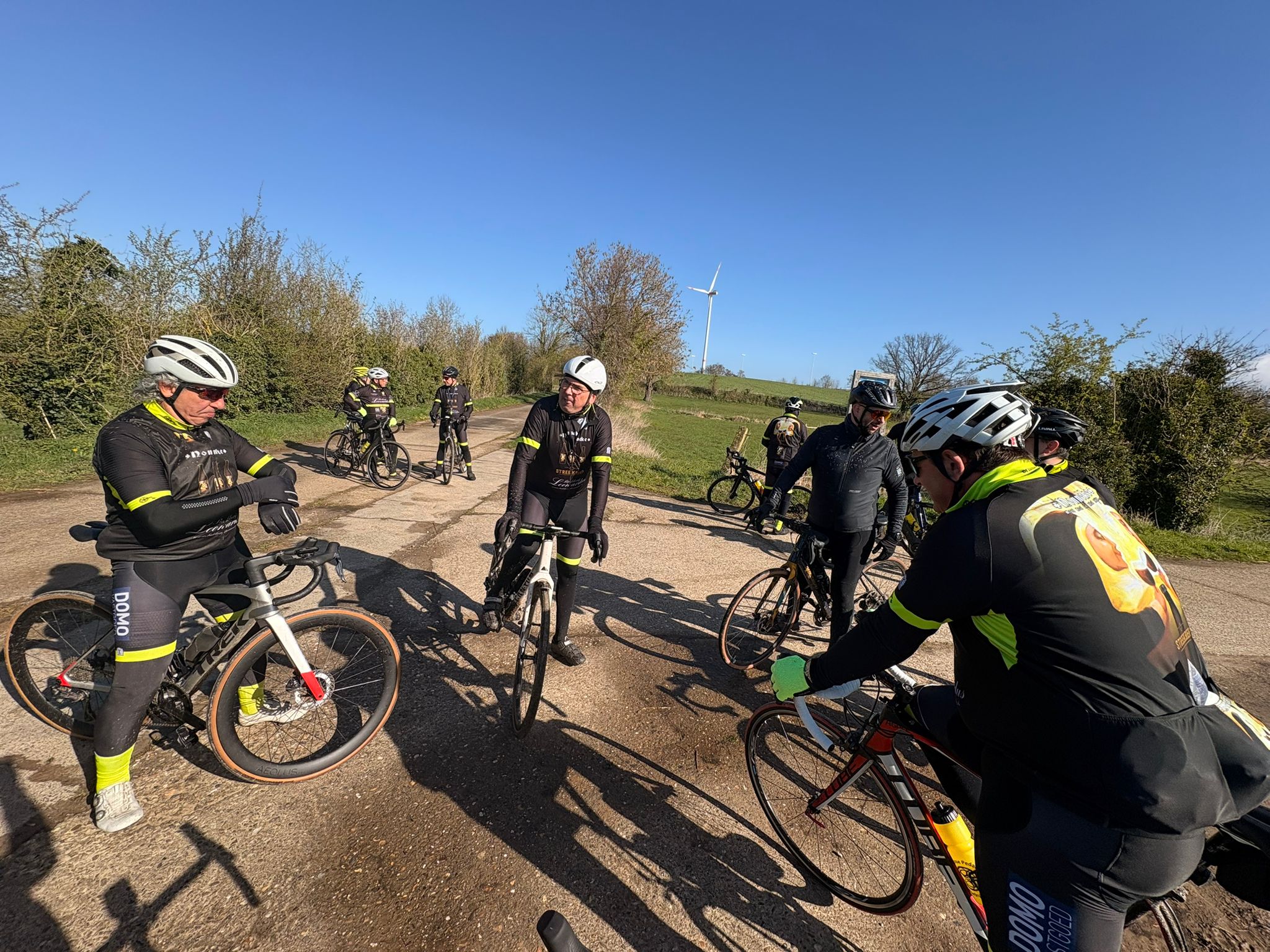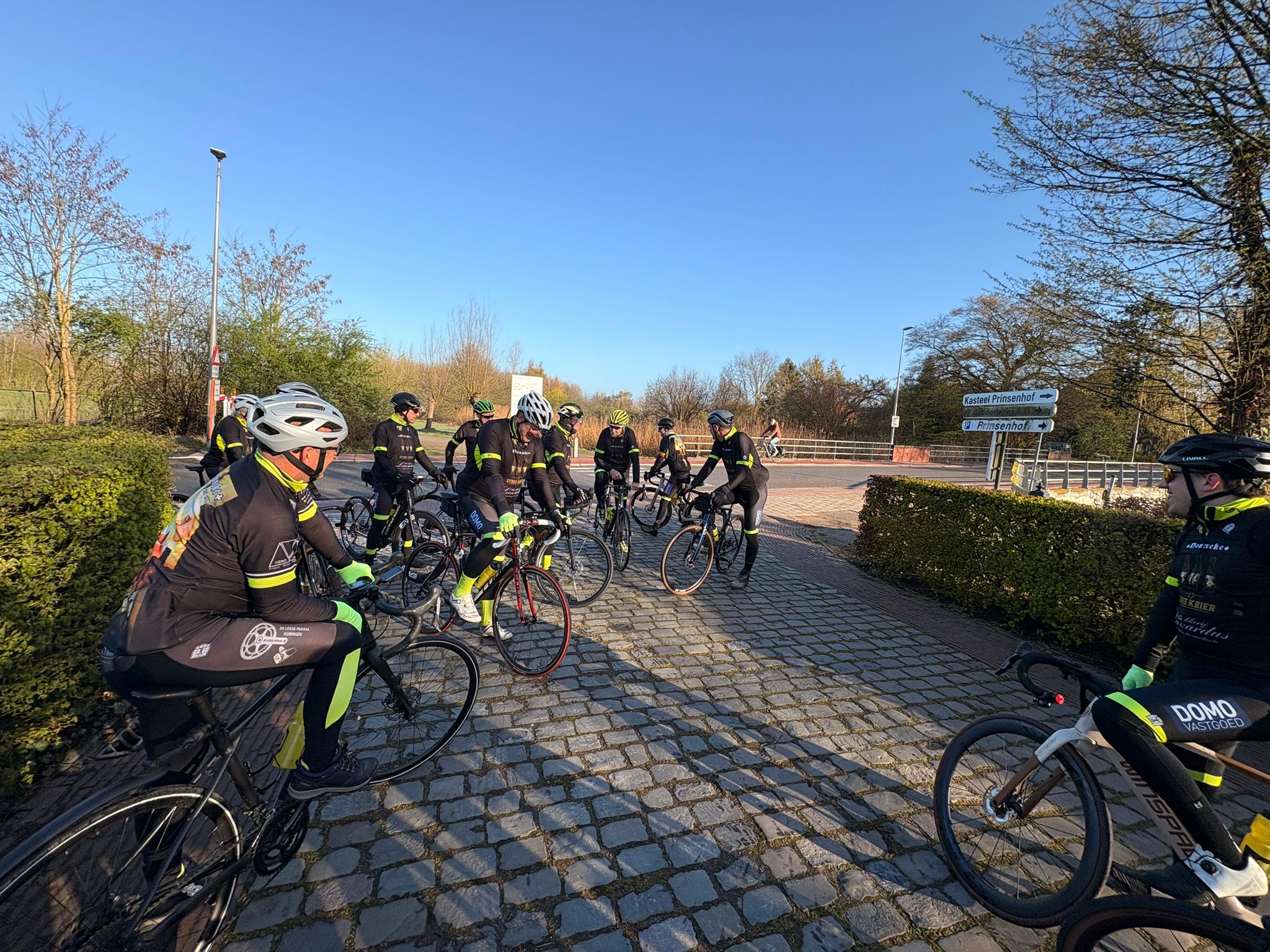 Aan het kanaal ging het tempo nog eens omhoog en werd alles opengetrokken. Er werd zelfs een sprintje ingezet om een voorbijrijdende wielrenner die niet bij de club hoorde eens goed te laten voelen dat hij niet alleen op de baan was 😏🚴♂️